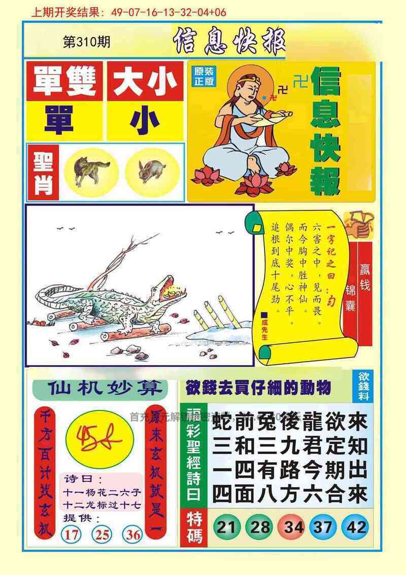 310期 | 龙蛇猴马 | 虎16 |
